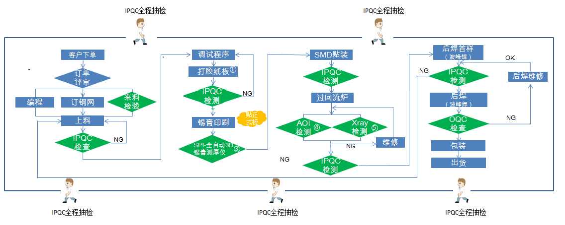 · 高端设备:JUCK2050、2060 松下CM101、CM202、CM301、NPM-W高速贴片机共计10台,AOI/RX210/XRAY/智能首件测试仪等